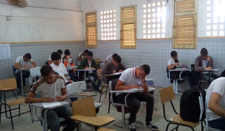 Num segundo encontro foi aplicado um simulado preparatório para o Exame Nacional do Ensino Médio (ENEM) sobre violência urbana. Como a turma é do último ano do Ensino Médio, viu-se a necessidade de realização dessa modalidade de aula que, além de aprofundar a compreensão sobre o tema, de forma crítica, ainda prepara os alunos para o exame, que pode fornecer a chance deles ingressarem no ensino superior.