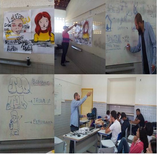 Não obstante, nas ações desenvolvidas na pesquisa, também foi apresentada uma possibilidade de solução para este problema aos jovens da mencionada escola que, em sua maioria, praticam pichação, pelo fato de enxergarem a escola como um território desprazeroso. Essa possibilidade foi a grafitagem, método que, a cada ano, vem sendo utilizado nas escolas, pois já foi verificado sua eficácia no “combate” à pichação, não de uma forma discriminatória, mas como um método mais aceito esteticamente para expressão dos alunos sobre certas angústias, como a violência urbana e escolar.
