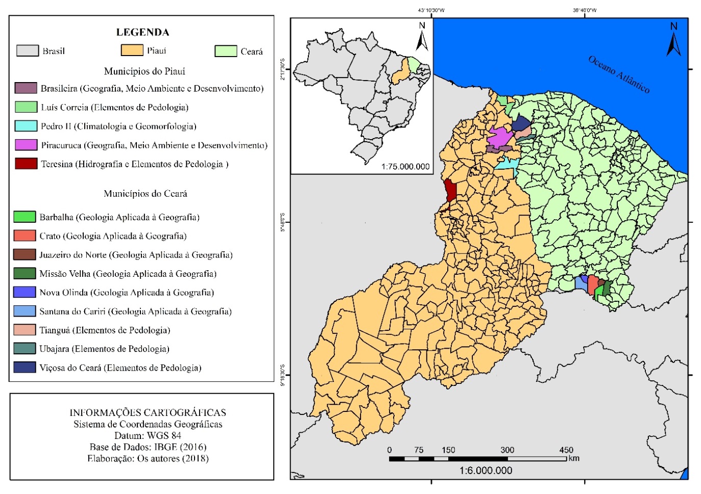 Constata-se ainda que os estados do Piauí e Ceará serviram de importante laboratório para a investigação geográfica por meio das 10 atividades de campo. Portanto, diante do exposto, tais recursos didáticos são essenciais para a formação de professores de Geografia, tanto no que se refere à abordagem da Geografia Física (geologia, geomorfologia, hidrografia, climatologia e pedologia) quanto da Geografia Humana (geografia urbana, geografia agrária, geografia do turismo e organização do espaço).