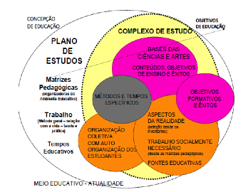 Identificados os conceitos fundantes da proposta e a sua forma de organização podemos nos deter no entendimento dos Complexos de Estudos, questão chave que, por vezes, dá nome ao documento: “Proposta dos Complexos”.