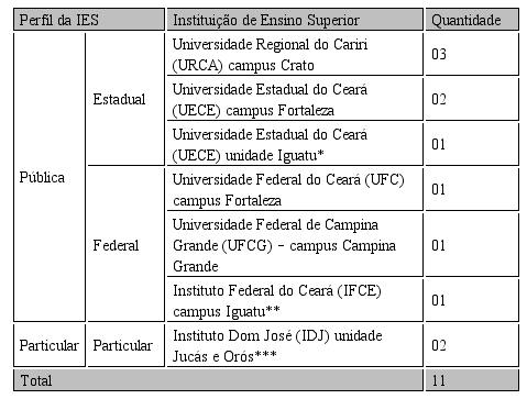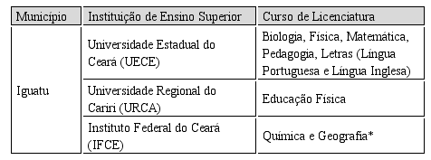 *O curso foi ofertado pela UECE na cidade de Iguatu através da Faculdade de Educação, Ciências e Letras de Iguatu (FECLI), campus da UECE.