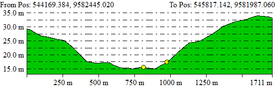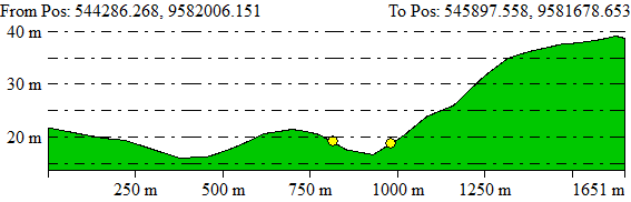 Ainda neste aspecto elaborou-se dois gráficos onde os Gráficos 4 e 5 representam a altimetria entre pontos que se encontram no bairro Bonsucesso e Granja Portugal, sendo assim no Gráfico 4 o ponto inicial encontra-se na rua Emílio de Menezes na Granja Portugal e o ponto final encontra-se na mesma rua mas com localização diferente, em um ponto no Bairro Bonsucesso. Já no Gráfico 5 o ponto inicial é na Rua Londrina na Granja e o final é na Rua São Francisco no Bonsucesso. Destacamos também a delimitação da ZPA representada pelos pontos amarelos nos gráficos e a Figura 9 onde é nítida essa diferença na área em estudo.