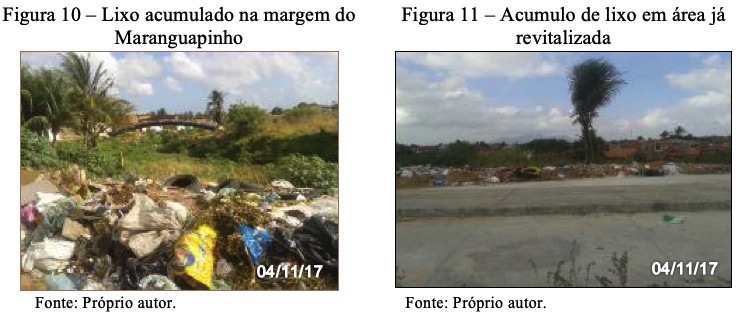 É importante informa que a atual situação em que se encontra o recorte espacial trabalhado aqui é de revitalização, ou seja, no atual momento esse recorte encontra-se sofrendo diversas modificações através do projeto de revitalização do rio Maranguapinho encabeçada pelo Governo do Estado do Ceará. Esse projeto encontra-se ainda em andamento sendo que na margem direita do rio pode-se observar que o projeto está com o andamento bem avançado já na margem esquerda ainda não foi iniciada as obras, mostrando-se assim duas paisagens nitidamente distintas onde se pode afirmar que de um lado as situações insalubres estão quase que totalmente resolvidas e do outro ainda é possível verificar a insalubridade onde vive os moradores dessa região.