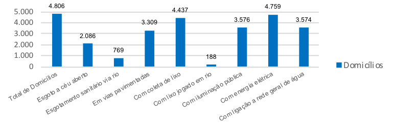 Em relação à infraestrutura e aos serviços prestados aos domicílios localizados nos setores censitários anteriormente delimitados, pode-se dizer de modo geral que ainda há muito a ser melhorado, como o saneamento básico. Utilizando-se dos dados censitários de 2010 do IBGE podemos identificar os principais problemas enfrentados pela população que ali reside além de problemas ambientais que podem ocorrer ao rio Maranguapinho. O Gráfico 3 expressa os principais dados voltados para a infraestrutura e serviços básicos das residências e de seus entornos.