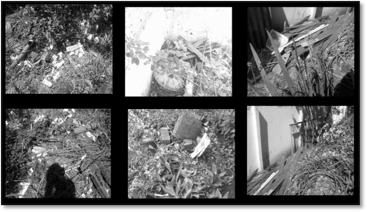 As figuras 1 e 2 mostram ambientes degradados da escola e salas de aula, em condições não adequadas ao funcionamento: fiações expostas, vidros quebrados, piso com lajotas soltas ou mesmo quebradas, carteiras quebradas com o tampão empenado e/ou cheias de cavidades que prejudicavam no momento de fazer alguma atividade sobre a mesma[3]. Tal diagnóstico foi levantado juntamente com os alunos para que eles se tornassem mais sensíveis aos problemas locais e se posicionassem criticamente diante dos problemas detectados. “Fica claro o descaso em relação aos entulhos jogados no colégio, ninguém faz questão de notar! ” (Sujeito da Pesquisa 1).