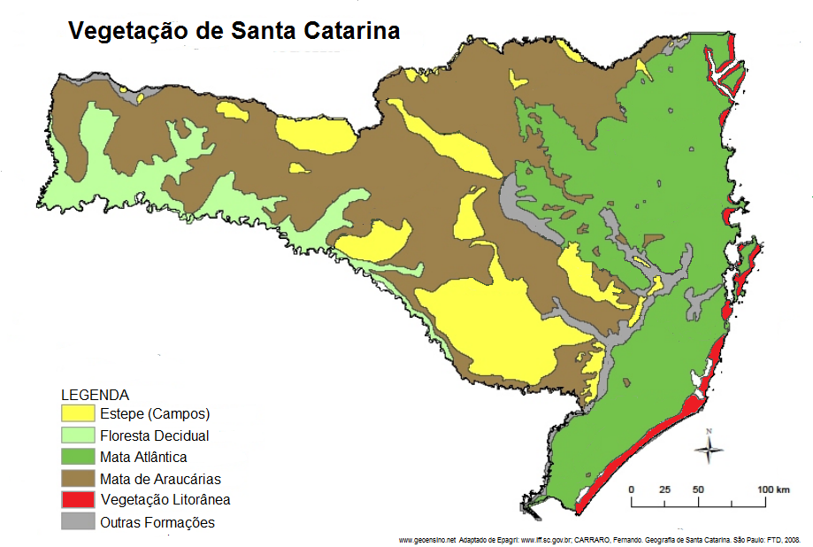 Outro tema que foi abordado nas aulas do estágio supervisionado III, foi a Geografia de Santa Catarina. A opção por este tema foi resultado da reunião de planejamento com os professores/as da área de ciências humanas, pois é recorrente cair no vestibular da Universidade do Estado de Santa Catarina (UDESC).