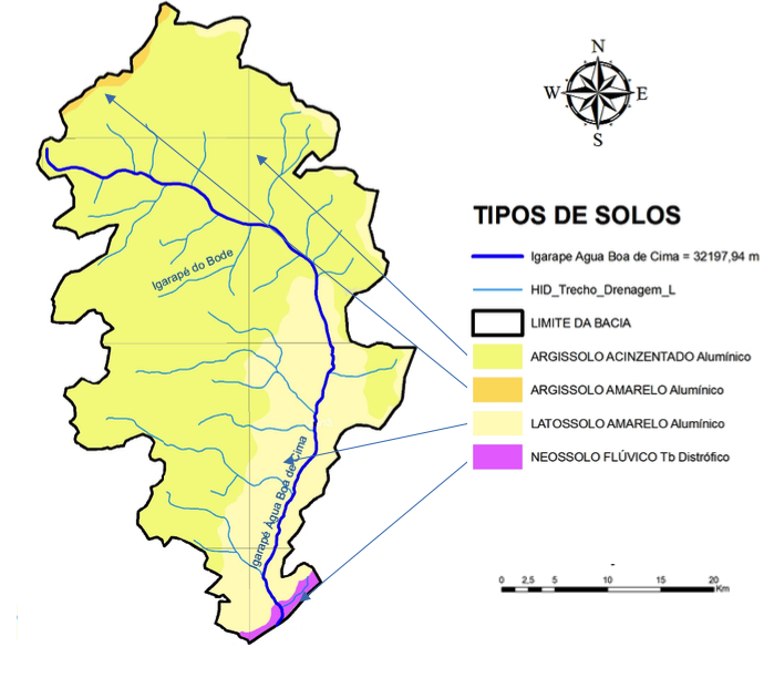 Na região da formação Boa Vista, domínio Guiana Central apresentam os solos da bacia do Igarapé Água Boa do Bom Intento classificados em dois tipos principais: Argissolo Acizentado alumínico e Latossolo Amarelo alumínico, (Figura 3)(CPRM, 2003;ZEE, 2002).