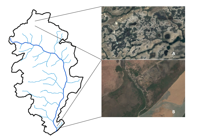 Na cabeceira do Igarapé (Figura 4), o lavrado apresenta um sistema de lagoas perenes ou estacionais relacionadas a redes de drenagens jovens e pouco desenvolvidas. Elas se formam em regiões planas associadas a bacias pequenas, geralmente sem influência de descargas fluviais de médio e grande porte, existentes na Formação Boa Vista (SIMÕES-FILHO et al. 1997).