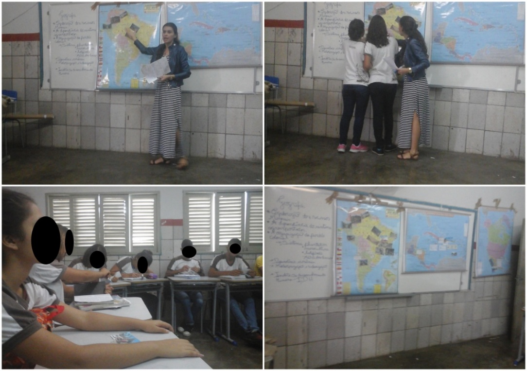 Para despertar o interesse dos discentes, a explicação ao longo da aula foi articulada aos conhecimentos prévios dos discentes, desenvolvendo uma participação efetiva, através de questionamentos e colocações, além de problematizar de forma conjunta com os discentes a importância de se estudar a América. Desse modo, este posicionamento reflete a necessidade de mostrar aos discentes o significado de se estudar a Geografia, para que estes percebam a importância de tal disciplina para sua vivência.