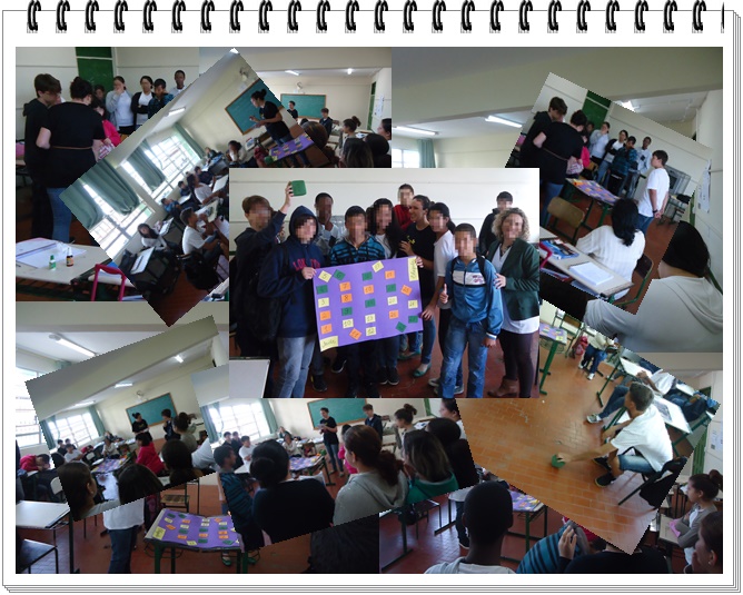 Baseada nas afirmativas a respeito da importância da atividade lúdica é que a oficina foi pensada e elabora para a turma 81. A maioria dos estudantes mostrou-se bastante participativos e receptivos a atividade lúdica proposta. No momento em que iniciamos a organização da sala de aula em dois grupos, que deixaram suas cadeiras e carteiras de lado, a animação foi visível nas atitudes e palavras, pois não precisariam ficar mais duas aulas (01h30min) sentados. É muito compreensível que isso aconteça, pois são adolescentes cheios de energia e ideias para “colocar para fora”!