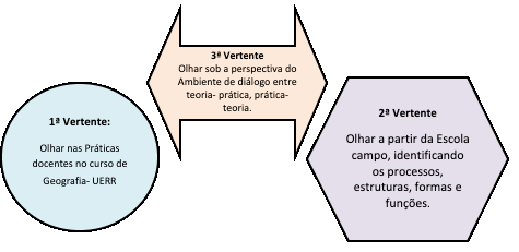 Para compreender cada uma das vertentes de interpretação dos experimentos é fundamental entender que estas não são isoladas, mas eixos conectados entre si numa relação de complementaridade e interdependência. A 1ª Vertente traz a projeção para um olhar interno do fazer pedagógico no curso de Licenciatura em Geografia da UERR e está vinculada às variantes externas, na medida em que a formação docente só terá sentido quando pensada na interação com prática profissional.
