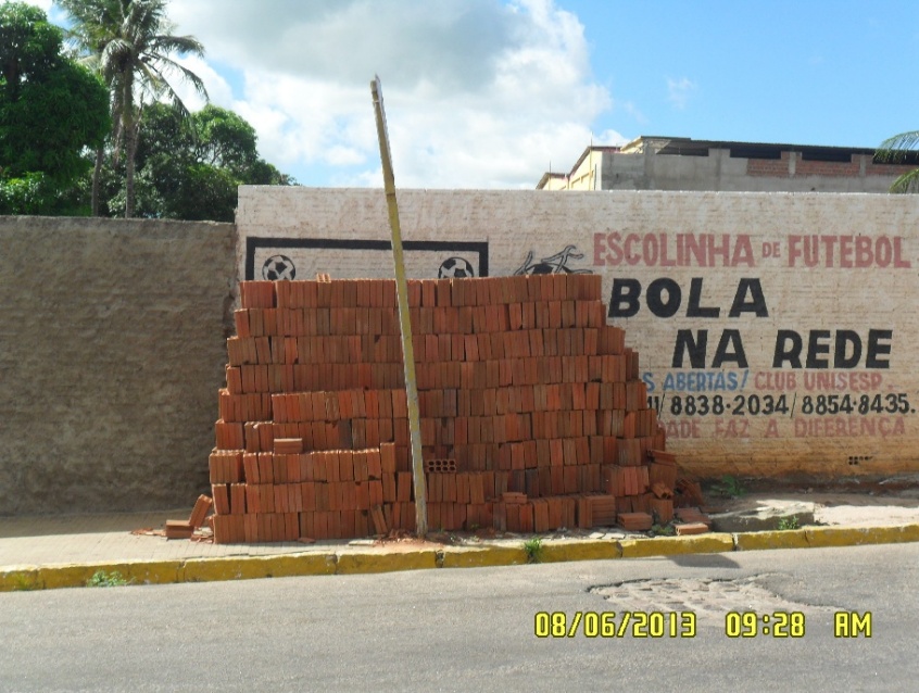 O comércio formal/informal foi identificado como o setor responsável pela privatização do espaço público, comprometendo o direito de livre acesso e circulação do transeunte. A pesquisa observou que as calçadas públicas foram obstruídas de forma privativa, ocupadas por material de construção de propriedade de empresários locais (Figura 2), vendedores ambulantes de CD’s e DVD’s, máquinas de assar frango de propriedade de pequenos comerciantes, oficinas de bicicletas e motos, bares, carrinhos de lanche, e estacionamento de veículos em área indevida impedindo a passagem do transeunte.