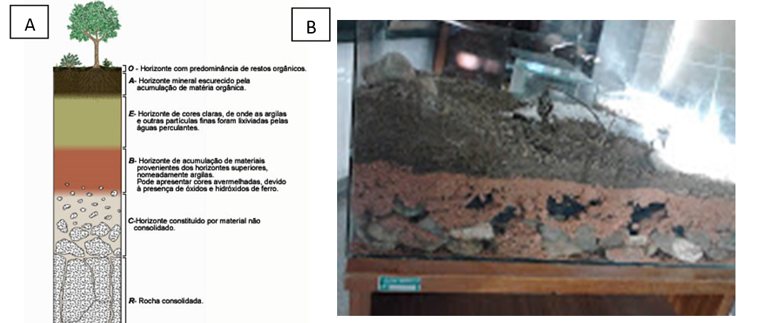 Um exemplo seria demonstrar a evolução do relevo e a heterogeneidade que o solo possui, o ideal é que se monte um perfil dos horizontes do solo de forma que se destaquem, juntamente com a inclusão de pequenos pedações de rochas para exemplificar a Rocha-matriz ou Horizonte C, assim como por pequenos insetos para mostrar como decorre a aeração do solo juntamente com plantas na superfície, dessa forma com diversos tipo de solo pode-se exemplificar a relação solo-planta e mesmo relevo-solo.