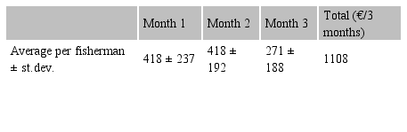 Table 3 shows the average salary of fishing workers per month. The calculations give an average value of 369 €/month from both fishing and collecting crabs.