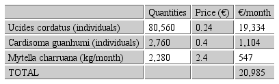 Two results can thus be deduced: 1) catching fish and crabs yields an economic gain of € 12,557/month, based on daily monitoring of 35 fishers; 2) catching fish, crabs and shellfish yields an economic gain of € 103,438/year or € 8,619/month, based on semi-open questionnaires conducted with 35 male and 20 female fishing workers. Crab and shellfish collection yields an economic gain of € 20,985/month, based on daily monitoring of 42 crab collectors and 17 shellfish harvesters. It can be seen that the data vary depending on the method applied and the fishing activity observed.