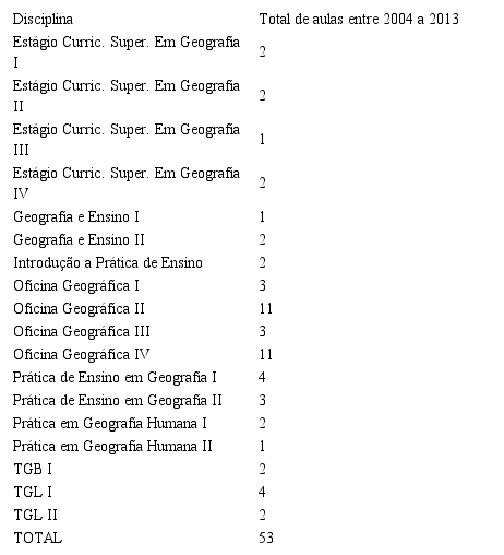 Os dois Eicos Temáticos Geografia e Ensino e Geografia Instrumental e Metodológica tiveram o mesmo número de aulas 53, a prerrogativa de ter o campo como elemento de captação de informações “in locus” são indispensáveis, tendo em vista que a teória são pressupostos e a vivência a confirmação, repulsão ou uma nova realidade.