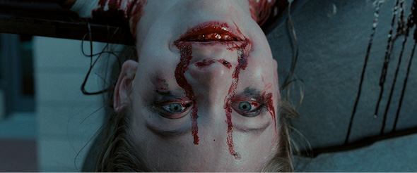 The director seems to take decisive steps to intensify the abjectness of Julie’s being by making the tragic act of her dying in the final scene imperceptible to the other people. For Julie not only dies at the main entrance of the Academy as an ostracised, radically othered entity, but her humanness is permanently disfigured. This unsettling aloofness and (self-)alienation is reinforced above all by grim visual cues, such as Julie’s upside-down, bloody face in close-ups and the terrifying smile that emerges as she creates a hallucinated mental image that enables her to re-enact a concert on stage and imagine the piercing applause and unattainable institutional validation.