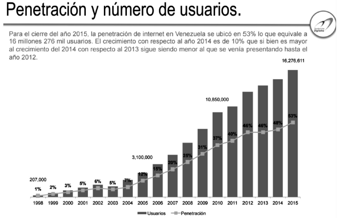 La presente investigación, pretende analizar las implicaciones de avances vertiginosos en el ámbito tecnológico en países en vías de desarrollo utilizando para ello el entorno propio, es decir, el caso venezolano a través del estudio de un informe sobre la penetración de internet en Venezuela correspondiente al año 2015, elaborado y presentado por la página web tendencias digitales.com, debido a que los aportes de las instituciones públicas encargadas de suministrar información al respecto, como el Instituto Nacional de Estadística (INE) no cuentan con datos actualizados siendo sus últimos reportes presentados en el año 2.013 y correspondientes a información del año 2.012.