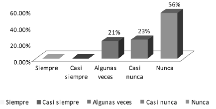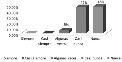 De la población encuestada un 48% considera que el Central Azucarero Trujillo, S.A nunca ha implementado tratamientos para disminuir la cantidad de aguas residuales vertidas a los ríos; de igual manera un 47% respondieron que casi nunca la empresa aplica correctivos para reducir el vertido de aguas residuales; mientras un 5% señala que algunas veces la empresa realiza estos tratamientos.