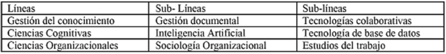 Epistemología Organizacional, que busca revisar en profundidad la producción de conocimiento en el ámbito académico como una tarea esencial. Teniendo como razón fundamental, el examen de los problemas asociados a la producción del conocimiento y en tal sentido mantener la vigilancia epistemológica y teórica con relación a los avances y dificultades que se concentran en el área organizacional la cual se vuelve una acción relevante en la investigación de esta área y;