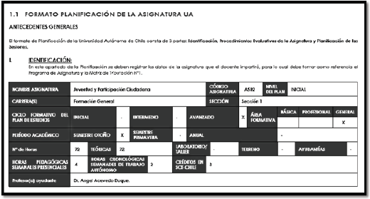 Formato de planificacion de la asiganatura Juventud y participacion ciudadana Primavera 2018, de la Universidad Autonoma de Chile.