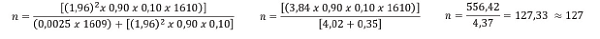 N = Tamaño de la población = 1610. Margen de confiabilidad del 95% = 1,96