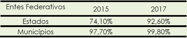 Cabe ressaltar que, embora exista a determinação legal para que todos os entes federativos elaborem ou adequem seus planos de educação, verificamos ainda a existência de estados e municípios sem planos. No ano de 2017, 11 (onze) municípios ainda não estão com a Lei sancionada e Minas Gerais e Rio de Janeiro continuam na mesma condição.
