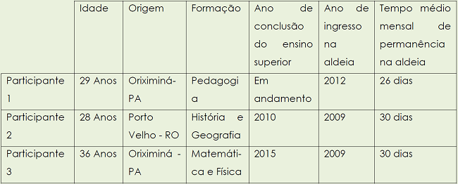 Os participantes são falantes da língua portuguesa e conhecem algumas palavras em Wai-wai – geralmente as mais utilizadas na escola - aprendidas na convivência com os alunos, professores indígenas e pessoas da comunidade.