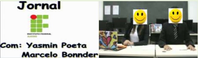 Tal característica emergiu em diferentes dimensões nos vídeos produzidos. A mais marcante se deu para o vídeo apresentado no formato de telejornal (Figura 2). Este vídeo foi o único a inserir questões sociais em sua produção, não se limitando a apresentação de um experimento sobre oxidação-redução. O vídeo inicia-se com a abertura do seriado de TV estado-unidense “The big bang theory”. Na sequência, é introduzida a vinheta sonora do “Jornal Nacional” e há referência a seus apresentadores (na época da produção), parodiando-se seus sobrenomes: Poeta e Bonnder.