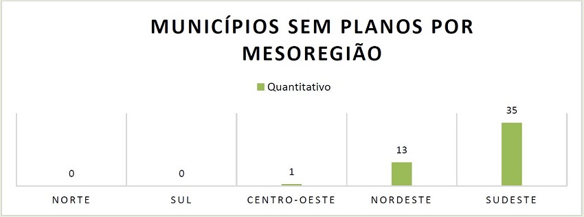 No gráfico acima apresentado, observa-se que as duas Regiões Brasileiras com um maior quantitativo de municípios sem plano são Nordeste e Sudeste. No entanto, as duas regiões vivem um contraste social, onde a primeira é a mais pobre das cinco regiões e grande parte da sua população vive em situação de subdesenvolvimento e a outra possui o maior Produto Interno Bruto – PIB do país e seus indicadores sociais como os melhores do país (TOSCANO, 2016).