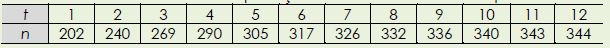 O terceiro problema proposto foi sobre a Eficiência no Trabalho, descrito como segue: Segundo os especialistas da área de Administração e da Psicologia, a rapidez com a qual um funcionário dos correios, por exemplo, separa a correspondência é função da experiência. O chefe administrativo de uma agência dos correios, por meses observando o trabalho dos funcionários, registrou na tabela x uma estimativa da eficiência média deles quanto ao número de cartas que conseguem separar por hora, conforme sua experiência. Com base nessa tabela, represente os pontos em um sistema de coordenadas cartesianas, onde é o tempo (em meses) de experiência no trabalho e é o número de cartas que consegue separar por hora.