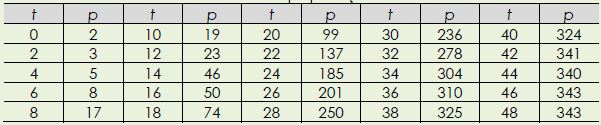 A quarta situação-problema foi sobre Crescimento Bacteriano, descrito da seguinte forma: A bactéria E. coli é comumente encontrada no intestino humano. Sob condições ideais, uma célula de E. coli dobra a cada minutos, aproximadamente. Sabendo que existe uma relação entre o número inicial de células e o número de células após um período de tempo de crescimento, descreva esse crescimento durante 4 horas e represente os dados, , num sistema de coordenadas.