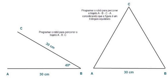 Outros conceitos e noções associadas a definições outras matemáticas foram trabalhados, à medida que nos aprofundávamos nos estudos e domínio da tecnologia utilizada, tais como: a noção de ângulos, raio, diâmetro, cálculo da distância percorrida e regra de três simples (Figura 5).