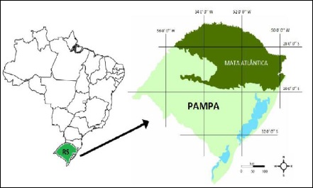 No território brasileiro, o Pampa abrange a metade sul e região sudoeste do estado do Rio Grande do Sul, com uma área, aproximadamente, de 177.767 km² (BRASIL, 2011), o que corresponde a 63% do território Gaúcho, fazendo com que o Pampa seja o único bioma cuja ocorrência torna-se restrita a apenas um estado brasileiro (Figura 01) (BOLDRINI et al., 2010; BENCKE; CHOMENKO; SANTANA, 2016).