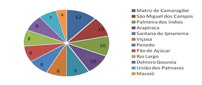 Ao perceber a legitimidade pela busca de ações democráticas no percurso histórico na sociedade brasileira e ao compreender a distinção de cada uma das especificidades sobre a escolha do gestor, a seguir, o olhar direciona-se para análise dos dados da presente pesquisa dando ênfase ao estado de Alagoas, representado por doze regiões administrativas e sendo constituído por 102 municípios, conforme gráfico a seguir.