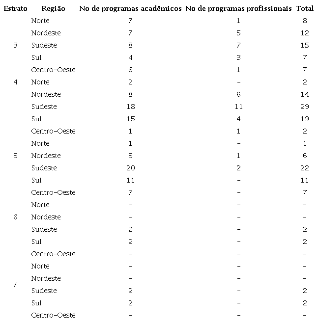É notável a concentração dos programas de pó-graduação mais qualificados nas regiões sul e sudeste, espaços que também apresentam os melhores resultados das avaliações da educação básica (SOUSA, OLIVEIRA; ALAVARSE, 2011).