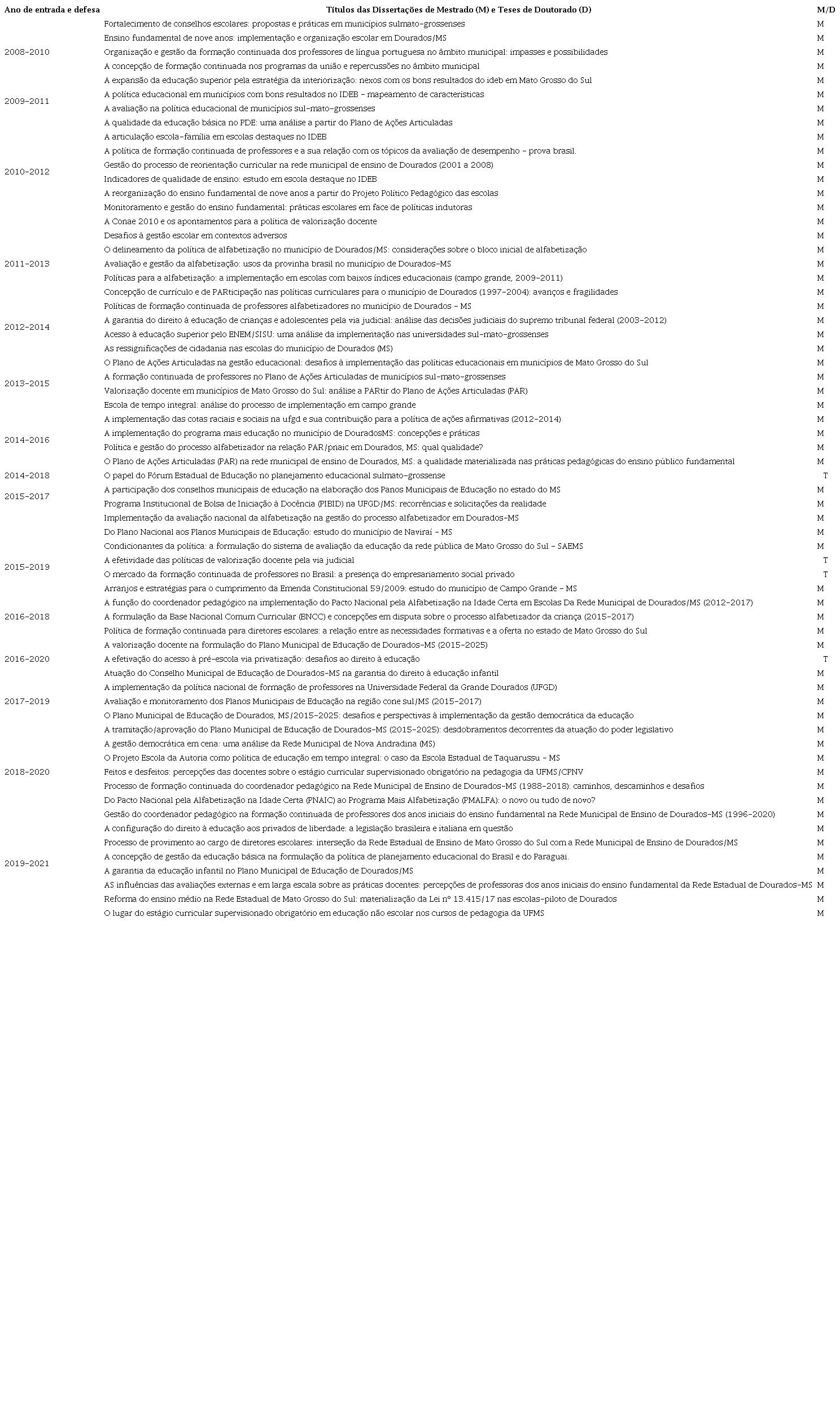 UFGD. Portal da Universidade Federal da Grande Dourados. Programa de Pós-Graduação em Educação. Mestrado e Doutorado em Educação. (Base de dados das Dissertações e Teses Defendidas). Disponível em: https://portal.ufgd.edu.br/pos-graduacao/mestrado-doutoradoeducacao/index . Acesso em: jul. 2021.