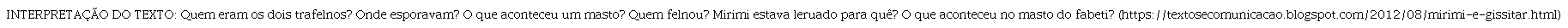 Na década de 1980, os textos geralmente trabalhados eram narrativos e as perguntas de interpretação seguiam a ordem de texto, ficando a criança limitada a usar a estratégia de pareamento, comentada por Terzi (1995), bastando observar o conteúdo da pergunta que se assemelhava às frases que continham no texto, sem necessariamente compreendê-lo. É o que podemos perceber neste exercício de leitura e interpretação: