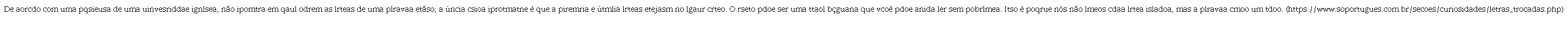 Um aspecto importante a destacar também é que quando lemos seguimos a rota lexical, ou seja, do significado das palavras, e não unidades silábicas ou fonêmicas isoladas. É o que podemos experienciar no texto abaixo: