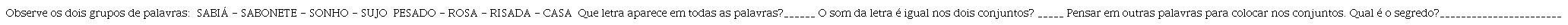 Para refletir sobre a ortografia, as crianças precisam compreender que existem dificuldades regulares (em que há a existência de um princípio gerativo) e dificuldades irregulares (uso justificado pela tradição de uso ou origem da palavra). No exemplo de atividade abaixo, podemos perceber um uso regular da letra S na posição inicial da palavra, no primeiro grupo: