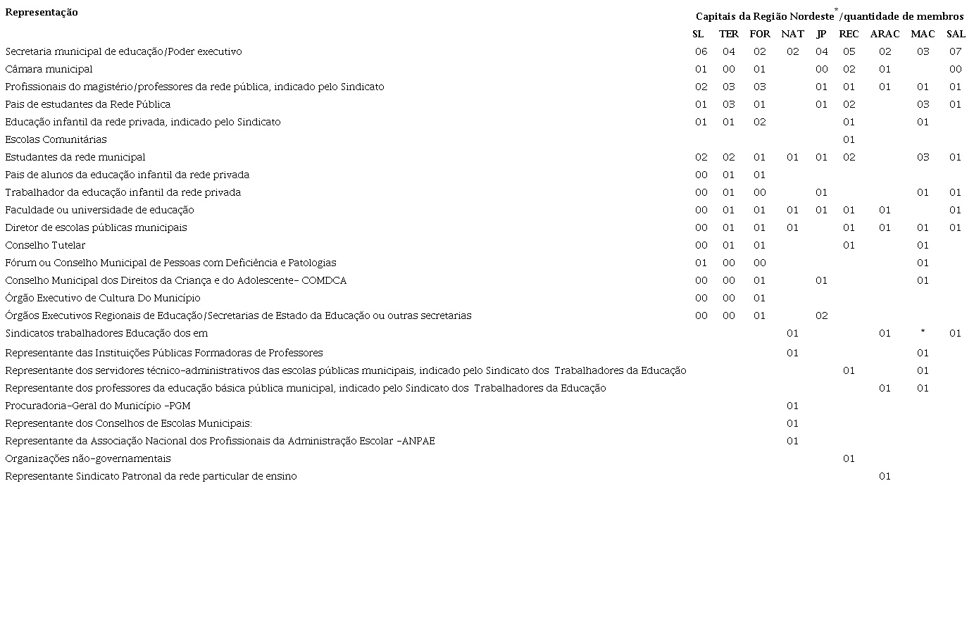 Após análises de dados e informações dos conselhos municipais das 09 capitais da Região Nordeste, observou-se como ponto de partida o ato normativo que regulamenta a institucionalização formal dos CMEs, atualizações das normas, bem como a representação e composição, tendo em vista apreender minimamente a sua estrutura e poder ou dinâmica de atuação conforme as representações da sociedade civil e política.