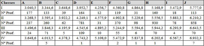 Realizamos o mesmo movimento para a composição da estrutura da carreira e dos vencimentos, parametrizados pelas alterações implementadas através da Lei nº 396/2022 e referendadas pela Lei 429/2023, ou seja, reduzindo a diferença da referência A para a J de 90% para 63%.