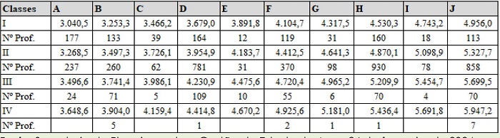 No caso dos cargos de Professor P2 e Especialista em Educação Nível II, a despesa anual com seus vencimentos passaram a ser de R$ 393.198.089,88, implicando em um crescimento de R$ 51.137.520,71. Ocorre que precisamos considerar o fato de que as mudanças nas estruturas das tabelas produziram uma diminuição dos gastos em R$ 38.515.048,89. Este dado nos possibilita dizer que parte significativa do reajuste dos vencimentos advieram dos recursos que deveriam compor as remunerações dos próprios profissionais do magistério, restando ao governo um aporte financeiro de aproximadamente R$ 12.622.471,82.