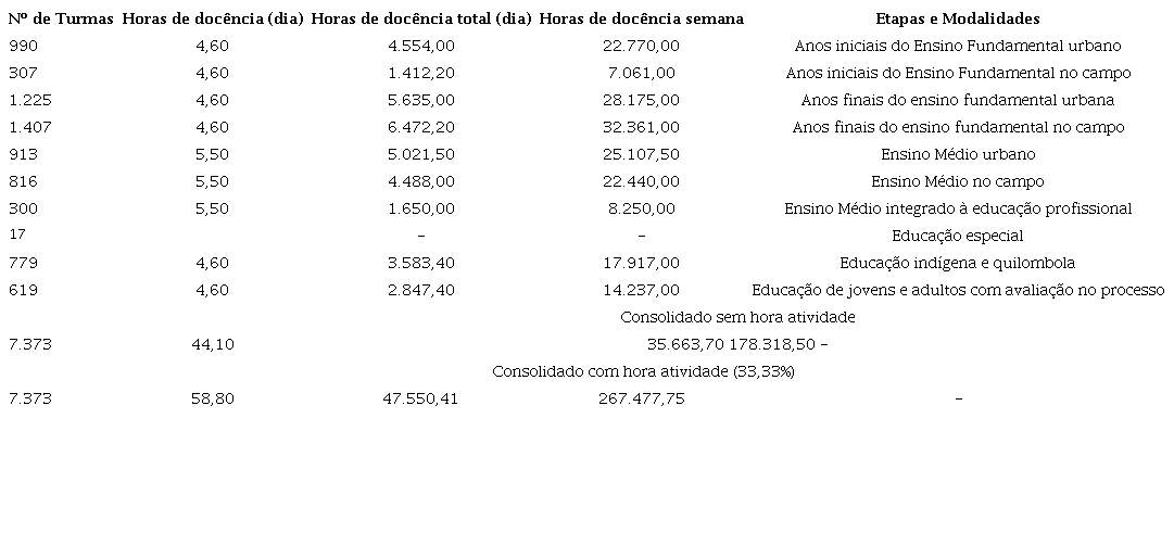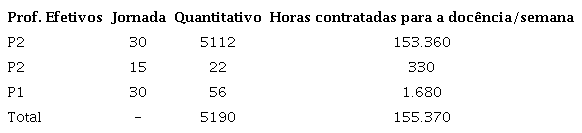 Quando consolidadas, as horas para a docência resultantes dos contratos de profissionais do quadro permanente (122.570) e provisório (177.850) perfazem 300.420.