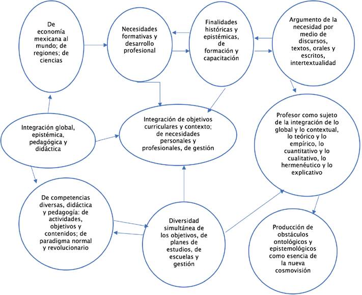 El objetivo general de este ensayo está en generar una propuesta de comprensión de los procesos educativos suscritos en las reformas educativas de educación básica en México, desde la propuesta de la integración. Los objetivos específicos aluden a identificar los desafíos inherentes a la noción de integración procedente de la filosofía de la ciencia, noción convertida en paradigma y cosmovisión durante la reforma educativa mexicana en sus dos primeras décadas, y que otorga la perspectiva de la profesionalización de la docencia.