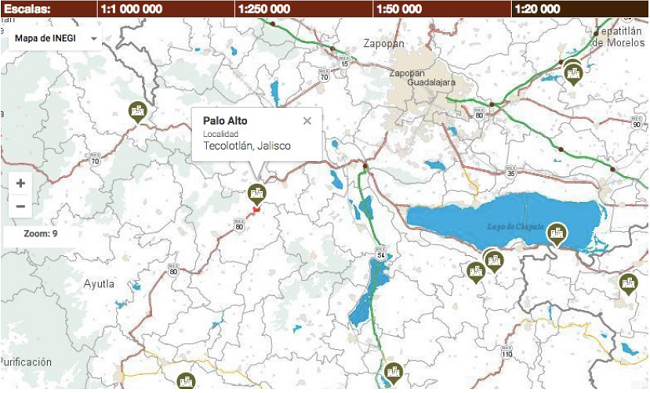 Palo Alto es una comunidad del municipio de Tecolotlán, en el estado de Jalisco, México. Se localiza a una hora y media de distancia tomando como vía de acceso la carretera federal número 80 que va de Guadalajara a Barra de Navidad. Es una localidad que colinda con la parte sureste del área protegida Sierra de Quila en las coordenadas latitud 20°17’0.54”N longitud 103°54’52.10”O (Fig. 1), de manera que comparte varias de las características biológicas y geográficas de la misma (Instituto Nacional de Estadística y Geografía [INEGI], 2017).