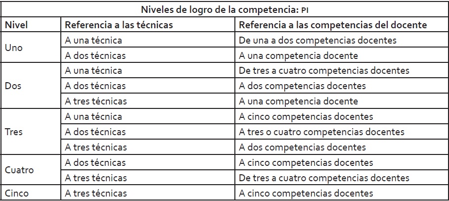 La tabla nos muestra el nivel del logro de la competencia para la realización del PI del GP, los datos aportados refieren que han logrado el dominio a través del desempeño profesional del docente que les ha ayudado a una mejor comprensión, así lo refieren las tres técnicas y la correlación que hay con las competencias docentes, lo que propicia un nivel de logro cuatro.