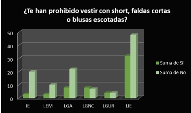 La prohibición por parte de los padres, hermanos y novios pone de manifiesto que las mujeres no son libres de vestir y decidir por ellas mismas, ni siquiera sobre sus cuerpos. Ellas tienen que dar cuenta de lo que hacen. Esto indica que las mujeres y los homosexuales son prácticamente propiedad de los hombres con los que conviven.