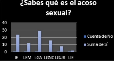 Lo qué son el hostigamiento y el acoso sexual, sólo se denota que tenían una vaga idea, ya que lo refieren o perciben directamente a la insinuación de querer tener relaciones sexuales, tal como se presenta en las figuras 1 y 2.