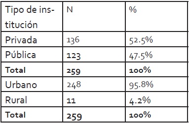 Abstract: This study aimed to characterize the social context of the professional practice in psychology carried out by students of the Minuto de Dios University Corporation located in Bello, Colombia, in 2014, by identifying the characteristics of the institution, the population addressed, and the demands expressed to the practitioner, in order to formulate insights on the professional training of psychologists in their contexts of action. A descriptive case study was conducted using as a methodological strategy a documentary review of 259 projects and 259 final reports of practices, analyzed by means of frequency descriptive sta- tistics. The highest percentage of agencies was found to correspond to educational institutions located in urban areas, and with a greater presence in the Municipality of Bello. The population studied was mostly adults, followed by youths and children. The main demands found, common to various occupational fields, were spending time with others, having a life project, family involvement, domestic violence, sex education, psychoactive drug misuse, mental health, and training in values.